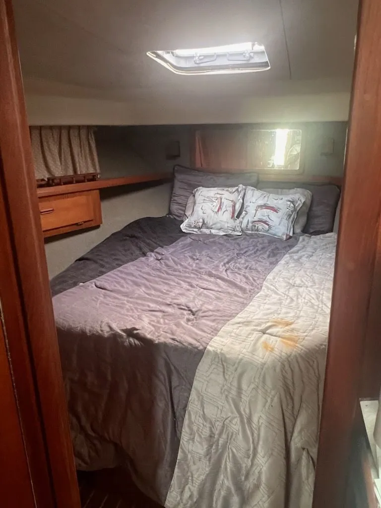 The interior and exterior present in excellent condition. The cabin is clean, comfortable, and thoughtfully laid out for extended stays onboard, featuring a forward master berth, convertible dinette for additional sleeping, a fully equipped galley, and an enclosed head with shower and sink. Upholstery has been refreshed, and the overall presentation reflects pride of ownership throughout.
