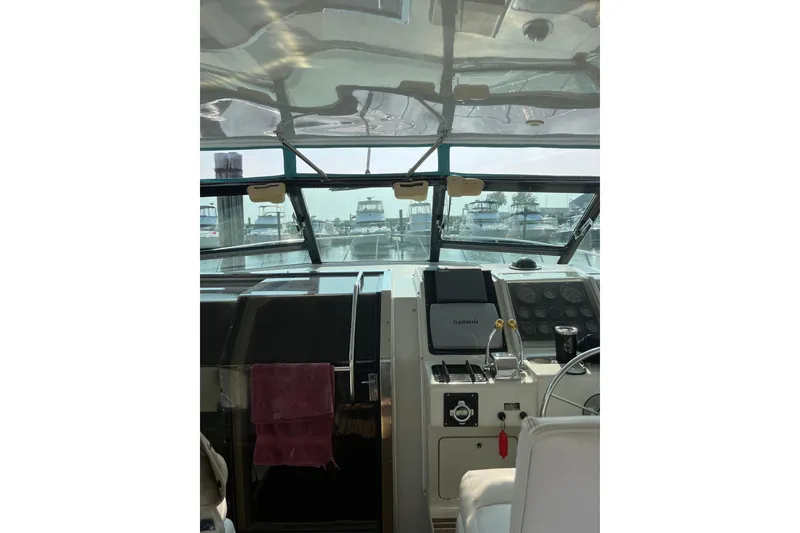 A beautifully maintained vessel owner(retired engineer ) twin 350 hp FWC crusaders. 6 kw genset, marine A/C with heat. Master stateroom forward with queen berth. large head with stall shower, electric head, sink, hot and cold pressure water and good storage. the salon couch converts to a queen berth. there is a convertible coffee table(dining table). Full galley with electric stove, micro wave, refrigerator .freezer, sink, good storage, sink and hot and cold pressure water. Fully air conditioned. bow pulpit, electric windlass with anchor and rode. bow rails, with walk around for bow access. Custom hardtop with enclosure. helm and companion seats. windshield wipers. tackle center with freezer. stern seat, transom door, swim platform with ladder. all new enclosure. both carbs rebuilt.