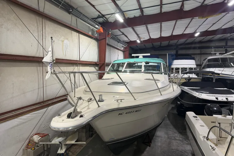 The open-style cockpit offers a functional and spacious layout well suited for cruising, entertaining, or extended days on the water. Wide side decks, stainless bow railings, and a solid windshield design make moving around the boat secure and straightforward. Below deck, the cabin reflects Tiara's hallmark craftsmanship, with a warm, traditional feel and efficient use of space for overnighting and weekends aboard.