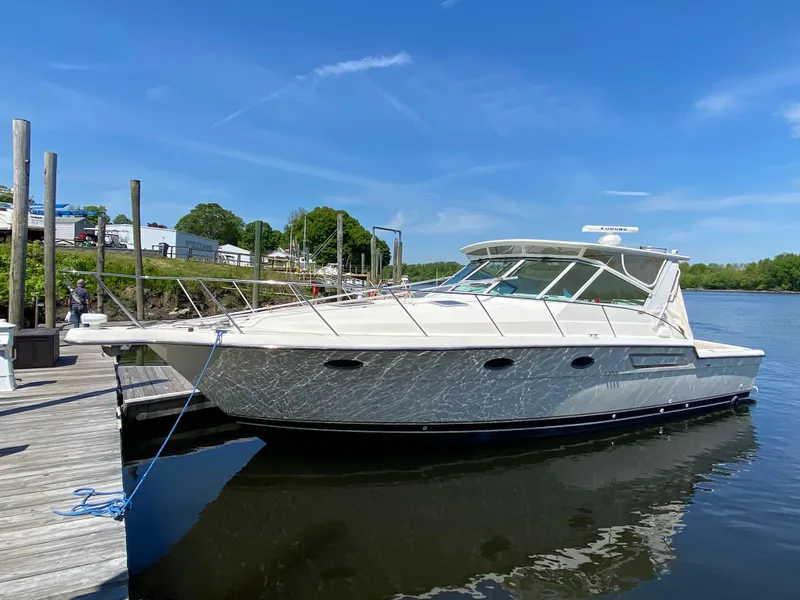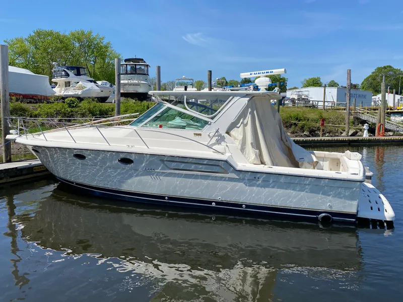 The Tiara 3700 Open preserves a heritage of flexibility for fishing or cruising - the customer chooses by option selection. The 3700 Open reflects design and manufacturing details found on each Tiara yacht: smooth, distortion-free, mirror-gloss finish; custom Tiara diamond pattern non-skid; a Tiara tilt-away helm station; outstanding performance in a smooth ride; and a spacious, comfortable interior with ample headroom.