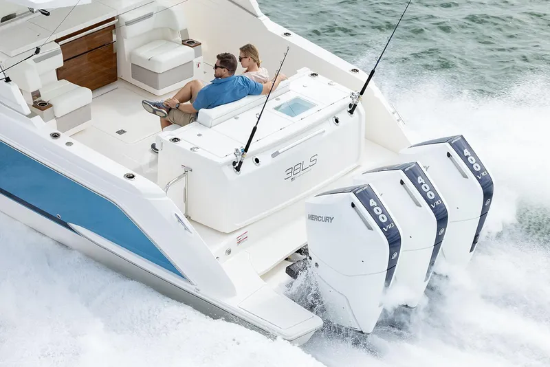 Introducing the stunning 2025 Tiara Yachts 38 LS, a remarkable cruiser that combines elegance with performance. This 38-foot vessel features a sleek fiberglass hull with a modified Vee shape, ensuring smooth navigation and stability on the water. Powered by three powerful Mercury Verado outboard engines, each delivering 400 hp, this boat promises exhilarating speed and responsiveness, with only 25 hours of use. Equipped with advanced joystick control, maneuvering this beauty is effortless, making it perfect for both seasoned mariners and newcomers alike. The thoughtful design includes ample space for relaxation and entertainment, ensuring memorable outings with family and friends. The Tiara Yachts 38 LS is a perfect blend of luxury and functionality, ready to take you on unforgettable adventures. Experience the thrill of cruising in style with this exceptional vessel!
