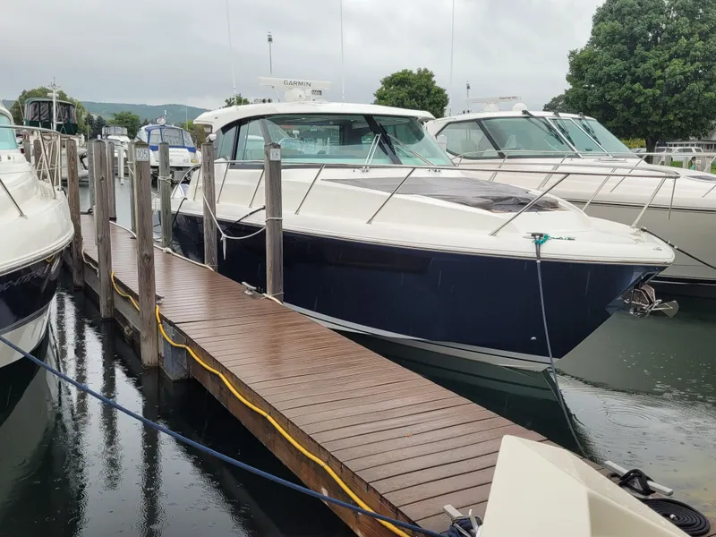 Freshwater, Northern Michigan, First Class Vessel with slip to rent. Loaded with features including triple Mercury 450R racing motors, ($90k upgrade) , giving her a 55mph top speed. Notable options include Joystick control, Seakeeper, ($75k upgrade), generator, additional 3rd display screen, fresh & raw water washdowns, full synthetic teak, and much more. The second stateroom and open layout make this 43LE the ultimate dayboat or family cruiser, perfect for this great summer on its way.