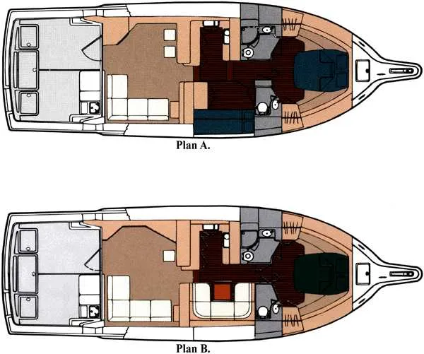 Tiara 4300 Convertible Specifications - Standard Equipment Interior Details - Standard Plan A: a private side stateroom with over - under bunks, and an en suite private head - Optional Plan B: replaces the side stateroom with a dinette, with a choice of either a second head or a storage - utility closet Salon - Six-foot, seven-inch headroom - Large L-lounge sofa is convertible to a queen berth - High-low coffee - dining table - Entertainment center with TV, VCR, and AM-FM stereo system with CD player and Bose speakers - Breakfast bar open to the galley Galley - Sub-Zero refrigerator and matching freezer - Convection microwave - Three-burner electric stove - Built-in coffee maker - Blender - Instant hot water - Deep stainless sink with side drainer - Custom Fountainhead countertop, with plenty of drawer and cabinet space Owner's Stateroom - 12-foot, six-inch overall length - Queen-size pedestal bed, with storage under - TV - VCR - AM-FM Cassette stereo with speakers - Port - starboard hanging lockers Head - Vanity with sink, mirror and linen - towel storage - Separate fully enclosed shower Flybridge - Helm instrumentation is grouped into clusters, increasing visibility and providing over five sq. ft. of space for electronics - Navigation center includes chart display, and underneath cooler - Dual Pompanette helm seats - Forward lounge that seats four - Custom Pipewelders half tower, complete with 4-sided enclosure, aluminum handrails and ladder Cockpit - 121 sq. ft. of clean, unobstructed social or fish-fighting space - Standard bait prep center with freezer - Custom built-in engine room entry - Transom boarding door and gate