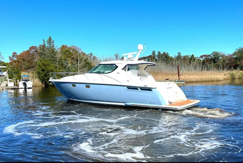 Tiara is established as a premiere quality yacht builder. Her big proportions are enhanced with this model's generous layout. Her owner just had extensive updates the Summer 2025. 2015 Volvo D6 440 hp engines were fully re-built-stripped to the block, heads off, all parts replaced. Onan 10 kw diesel generator had 847 hours then the same stripping and rebuild. NEW Starboard Pod with 2 year warranty, Port pod is rebuilt with proof. Cruise 33-35 MPH at 3200 RPM with 85% load consuming 33 GPH, 0.9 MPG. Top speed=40 MPH, consuming 41 GPH. Cruise faster than the other sister-ships of this vintage that have the smaller engines.E4 update includes: 5 ECU's + wiring harness, throttles, Joystick, NEW gauges, updated 2025 software. All have 2-year warranty.