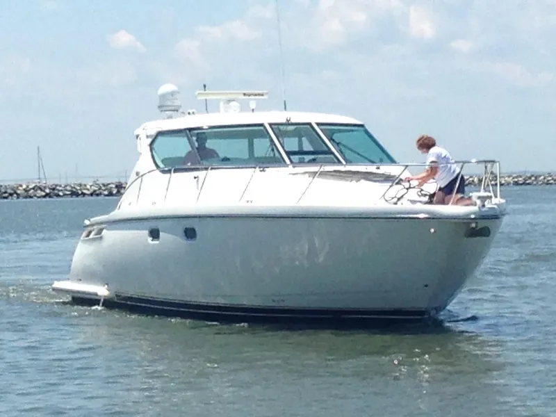 The Tiara 4300 Sovran with Volvo Penta’s Inboard Performance System challenges every assumption about what a boat can be by changing the whole future of onboard performance while elevating enjoyment of the boating experience. On the 4300 Sovran, dramatically reduced noise and vibration allow conversations in comfort while underway. Because Volvo Penta’s IPS releases up to 25% fewer emissions, owners enjoy diesel power performance, economy and durability without exhaust smoke, noise or vibration. In fact, Volvo Penta’s IPS in the Tiara 4300 Sovran delivers 25% better fuel efficiency resulting in fewer trips to the fuel dock, increased speed, acceleration and extended cruising range. The 4300 Sovran also integrates the Volvo IPS Joystick control that puts unmatched low-speed maneuverability at your fingertips. With a single, subtle movement of the IPS Joystick, you command the IPS propulsion units to respond in any direction. This gives you the power to maintain control of your 4300 during tight-quarter docking, coming about, reversing or even going straight sideways – all without the need for bow thrusters. Most importantly, because IPS takes up 25% less area in the 4300 Sovran, the design team was able to employ the newly available space as a full second stateroom with head. Design keys such as vessel sinks and shower partitions, an optional washer / dryer, a full-size refrigerator / freezer, even a spice rack and voluminous storage are but a few of the new options you will find. And the cockpit seating is both inviting and comfortable – a perfect environment for the cruising lover.