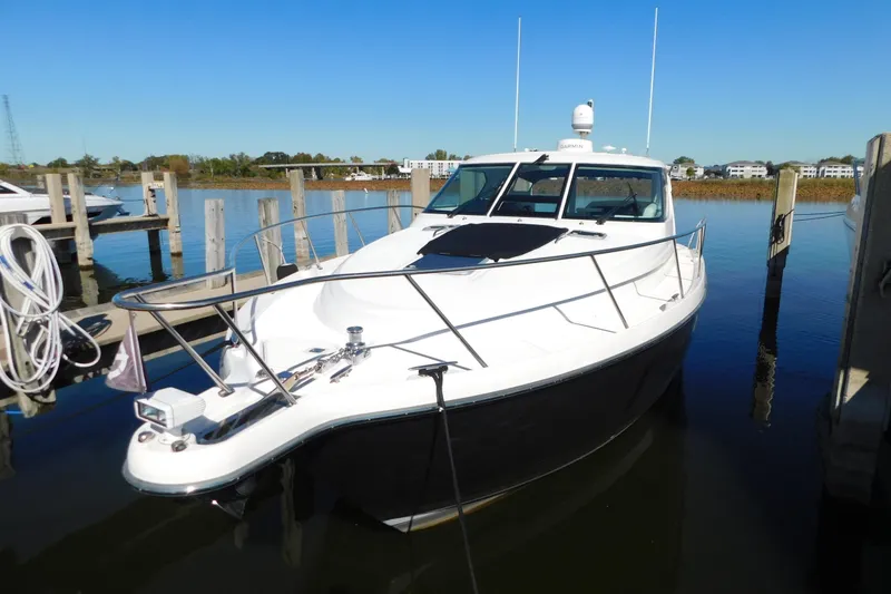 On the 4300 Sovran, dramatically reduced noise and vibration allow conversations in comfort while underway. Because Volvo Penta's IPS releases up to 25 percent fewer emissions, owners enjoy diesel power performance, economy and durability without exhaust smoke, noise or vibration. In fact, Volvo Penta's IPS in the Tiara 4300 Sovran delivers 25 percent better fuel efficiency, resulting in fewer trips to the fuel dock, increased speed and acceleration, and extended cruising range. The 4300 Sovran also integrates the Volvo IPS joystick control, putting unmatched low-speed maneuverability at your fingertips. With a single, subtle movement of the IPS Joystick, you command the IPS propulsion units to respond in any direction. This gives you the power to maintain control of your 4300 during tight-quarter docking, coming about, reversing or even going straight sideways all without the need for bow thrusters. Because IPS takes up 25 percent less area than traditional engines, the design team was able to employ the available space as a full second stateroom with head. Vessel sinks and shower partitions, an optional washer/dryer, a full-size refrigerator/freezer, even a spice rack and voluminous storage are a few of the options you will find. The cockpit seating is also both inviting and comfortable, a perfect environment for the cruising lover.