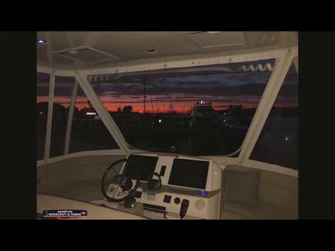 - Flybridge Enclosure, Acrylic Hard Glass, Side Panel to slide aft and swing up attach to hard top, center swing up attach to hard top, raise bottom zipper to make easier to open.