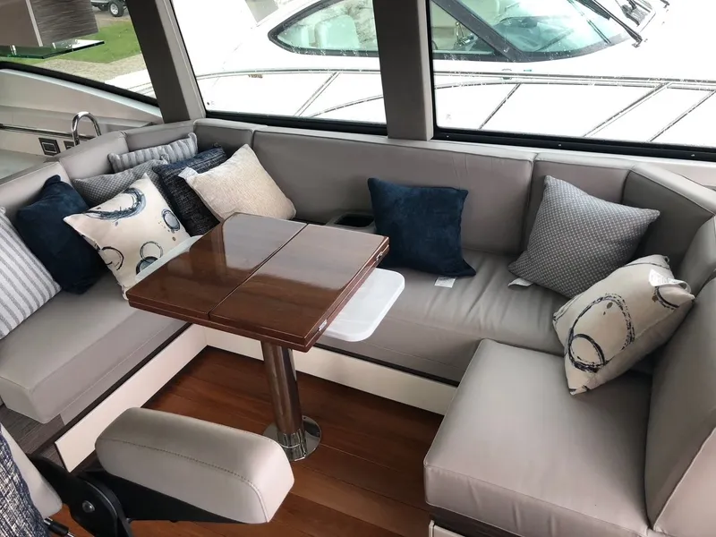 Loads of standard equipment insure enjoyment on the water or in the marina. Garmin glass cockpit electronics, windlass, spotlight, power sunroof, hydraulic swim platform, forward deck Chaise Lounge seating, Cockpit L lounge seating. Master and VIP staterooms and two heads.