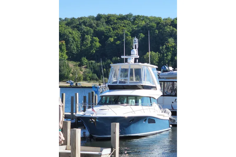 Fresh water Tiara 44 Flybridge. Upgraded to Volvo IPS650 480 hp motors with 308 hours. Loaded with options of SeaKeeper SK6, generator with 441 hours, FLIR night vision camera, lower helm station, flybridge cockpit air/heat, flybridge wet bar and fridge with teak table, full encloser, central vacuum system, engine room camera, Nautical Hydraulic swim platform and underwater lights. Sold new thru Walstrom and have done all service and maintained this vessel since new. Completed full service on motors and systems, ready to go for this season. Tender not included.
