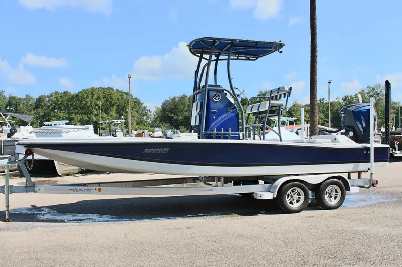 In stock now!! Super Shallow Running Boat!! This boat floats in 7-8 inches, jumps on plane instantly in the same and runs in 3-4 inches of water when on plane. Awesome bay/flats boat with tons of storage, live baiters dream.