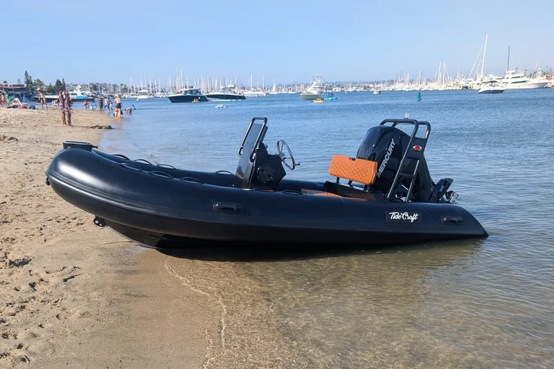 Turn heads on the water with this custom Black & Orange Catalina 13, Tide Craft's flagship tender with a sleek, modern aesthetic and unmatched standard features. At 12'10", this fully rigged inflatable RIB combines standout design with practicality, performance, and luxury-making it the perfect tender or standalone cruiser.