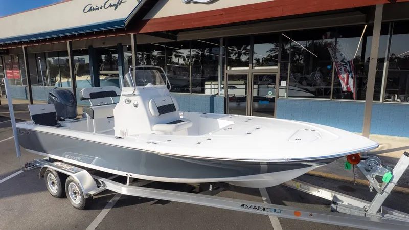 Equipped with a Yamaha motor and BayStar Plus hydraulic steering, this rig offers a smooth and steady ride even through light wakes. Whether you are casting lines in the backcountry, snorkeling near the coast, or simply cruising with the JL audio system playing your favorite tunes, this boat provides the stability and space to do it all. It is the ultimate platform for water enthusiasts who refuse to choose between a dedicated fishing rig and a comfortable day cruiser.