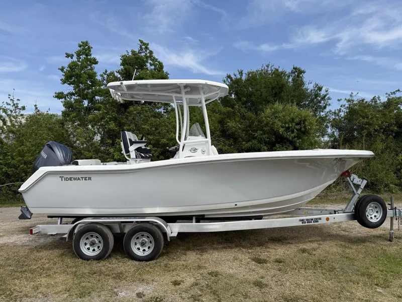 ~BOAT SHOW PRICING IN EFFECT! ~CALL FOR DETAILS! ~ BEST DEALS OF THE YEAR!!!~ Clearance Priced!!~ IN STOCK AT OUR TAMPA LOCATION- 7806 Anderson Rd. Tampa, FL 33634 - call (813)884-1395 for more information~ Powered by a Yamaha F200XC w/Zero Hours~ Helm Pad w/Tidewater logo~ Cooler Slide with Grizzly Tidewater logo'd cooler~ Under Leaning Post Tackle Storage~ Whisper Gray Hull Sides, Console Face Plate, and Hardtop underside color~ Fiberglass hard top with white powdercoating~ Fresh Water Shower~ Sunshades, bow & aft~ 2-Bank Charger System~ Sea Blaze Mini RGBW underwater lights~ Trolling Motor Plug~ Extra Rod Holders, bow & mid-bow~ King Fish Rodholders~ Magic Tilt Tandem Axle Trailer with spare tire.