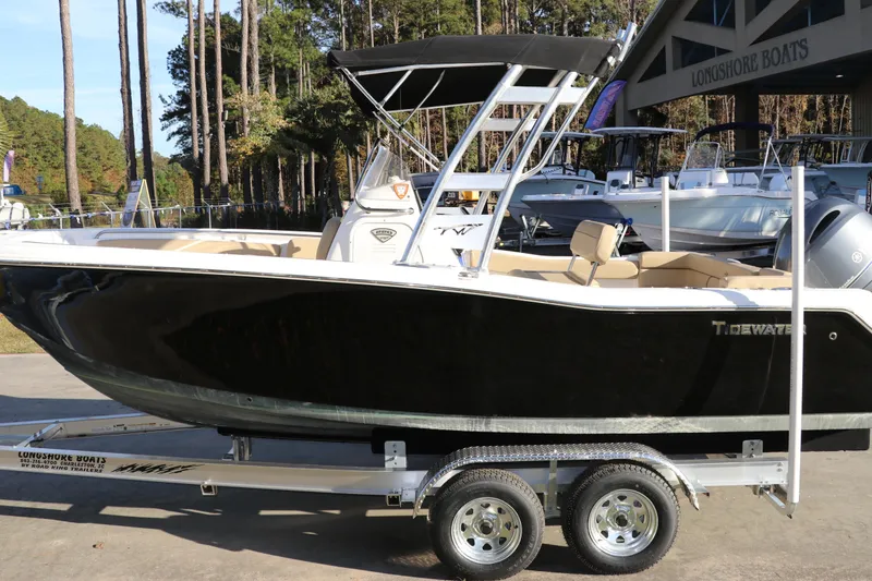 This newly serviced 2016 Tidewater 220 LXF CC looks and runs like a much newer boat with very low hours (209 hrs) on a Yamaha 200HP engine! A beautiful black hull, with a Matching Bimini Top, provides ample shade on those hot days.