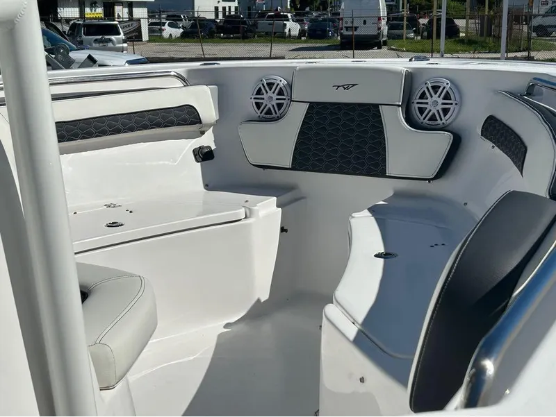 ~BOAT SHOW PRICING IN EFFECT! ~CALL FOR DETAILS! ~ BEST DEALS OF THE YEAR!!!CLEARANCE PRICED! IN STOCK AT OUR TAMPA LOCATION: 7806 Anderson Rd. Tampa, FL 33634 (813)884-1395. All standard 2024 model features included. FACTORY OPTIONS: Yamaha F250XB; Yamaha CL5 Information Station; Oyster Full Hull color, Console Faceplate color, and Hardtop Bottom color; Edson Steering Wheel Upgrade; Cooler Slide; Tidewater Helm Pad; Fresh Water Shower; Sunshades, aft & bow; 2 Extra Speakers in Hardtop; 2-Bank Charging System; Sea Blaze Mini RGBW underwater lights; Trolling Motor Plug; Extra Rodholders, bow & mid-bow; Kingfish Rodholders; 60 quart Grizzly Cooler; Porta Potti; Magic Tilt Custom welded-bunk Tandem Axle Trailer with spare tire, Stainless Prop; 2 Batteries.