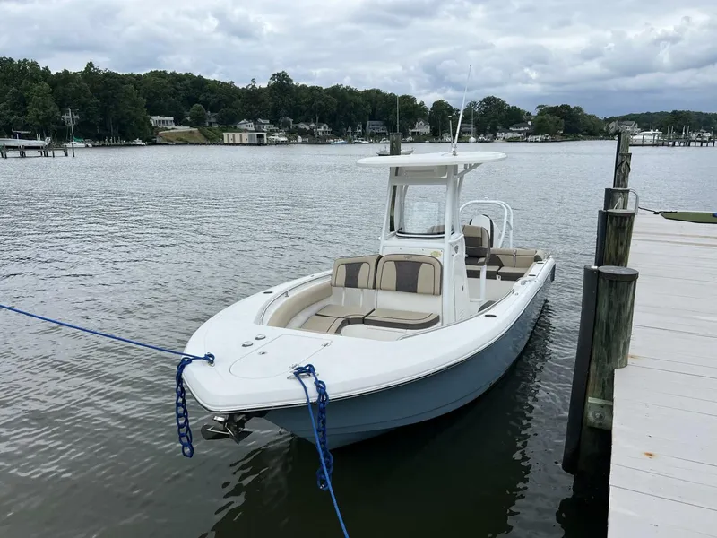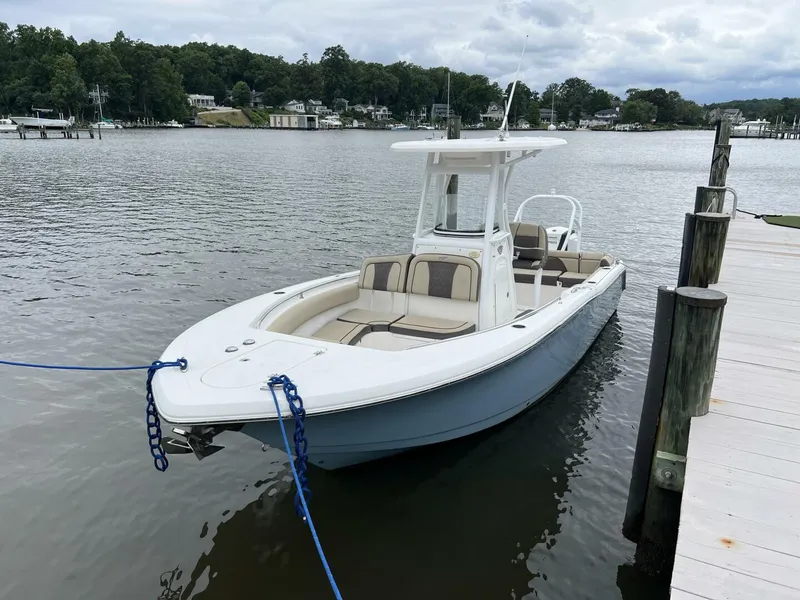 The Tidewater 232 LXF is loaded with full, comfortable upholstery and stainless steel cup holders. A newly designed console includes a glove box, footrest, and catch-all trays. The large rear seat has a walk-through transom door. All of these are standard features. But, best of all, its family-friendly bow seating makes the 232 LXF a luxuriously refined boat. This Tidewater 232 LXF has been owned by the same owner since new and has been used to cruise the water of the Upper Chesapeake Bay for the past few years. The boat is well optioned and ready to continue cruising. This is a great option, affordable option for a first time boater, or someone wanting to move up to a larger center console.