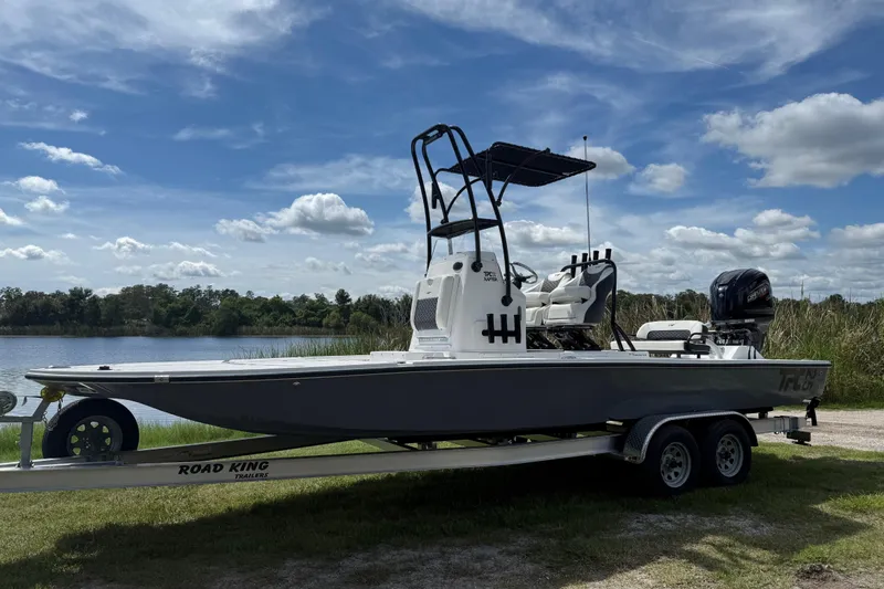 ~The 2025 Tidewater 25 TPC Raptor is a serious fishing machine built for anglers who demand speed, stability, and shallow-water access. As part of Tidewater's Performance Cat lineup, this 25-foot bay boat features a catamaran-inspired hull design that delivers a smooth, dry ride across choppy bays while still drafting shallow enough to reach skinny flats where the fish are hiding.