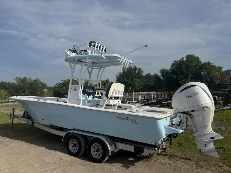~BOAT SHOW PRICING IN EFFECT! ~CALL FOR DETAILS! ~ BEST DEALS OF THE YEAR!!!~ CLEARANCE PRICED!~ IN STOCK at our Tampa location: 7806 Anderson Rd. Tampa, FL 33634 (813)884-1395,~ Yamaha F300XSB2 w/Zero Hours!~ Second station hard top with white powdercoating, hull-matched helm pod and underside~ Helm Pad w/Tidewater Logo~ Cooler Slide for LP with Yeti cooler~ Leaning post tackle storage~ Fresh water shower~ Sunshade rear and bow~ Jack plate~ Sea Blaze Mini RGBW UW lights~ Extra rod holders midbow in deck, midship~ King fish rod holders~ Custom welded-bunk magic tilt trailer with spare tire~ Crank battery~ Stainless Yamaha prop.