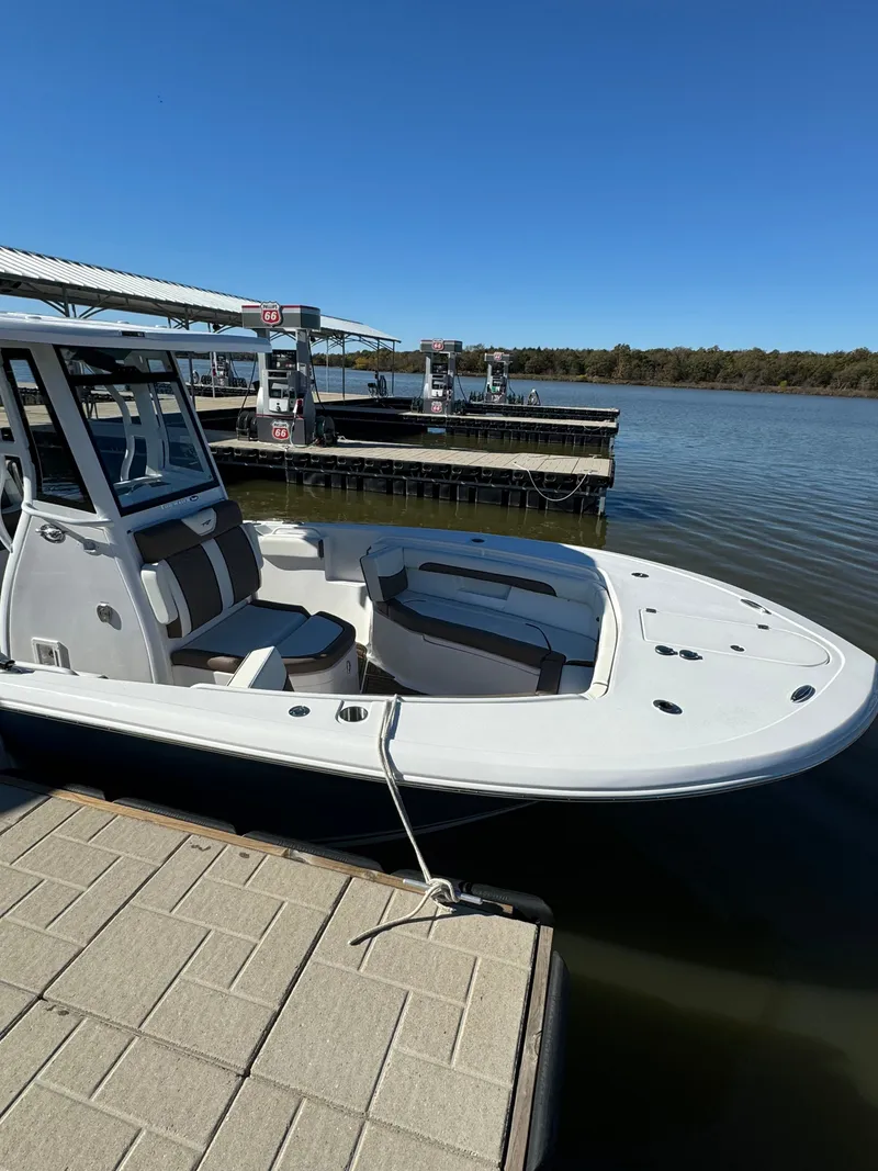 New 2025 256 LXF powered by a single 4.2L V6 300 pushing up to 44 MPH! Equipped with a SeaKeeper Ride system for stable boating on rough water conditions!