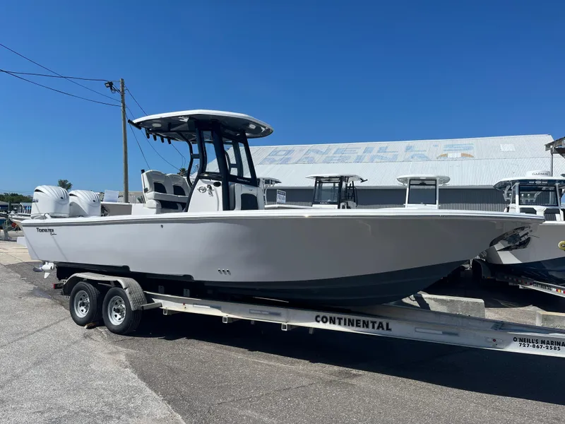 Brand New 2025 Tidewater 2700 Carolina Bay powered by twin Yamaha F300XSB2 (white motor).