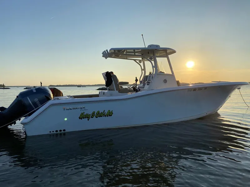This Tidewater 280 CC Custom is in great condition and well equipped! Powered by Yamaha 250's with low hours (approx. 470) and also includes a 2022 Tri-Axle Venture Trailer. She has all the desired features and equipment - Dual Garmin Electronics Screens with Radar too, Carbon Fiber dash panel, Aqua Traction decking, Windlass, Marine Head, Lenco trim tabs, Fusion stereo, cockpit shower, live-well, beautiful upholstery, forward table and cushions. Light color of hard coat bottom paint for lift or trailer kept. The Tidewater 280 CC Custom is designed with luxury and comfort in mind. Lending itself to great fishing and family fun days on the water!