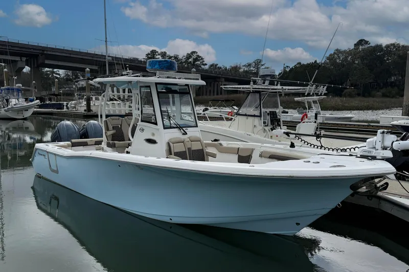 2022 Tidewater 292 CC Adventure. Known for its perfect balance of rugged fishability and family-friendly luxury, this center console is a serious offshore performer with a sleek, modern aesthetic. This vessel is designed to handle chop with confidence while providing a comfortable, high-end experience for everyone on board.