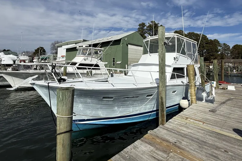 Just Listed for Sale! Classic Tiffany 46 ft Sportfish built in 1970. The current owner has owned the boat since 1982 so they have a lot of history. The hull was built as wood originally but through the years the hull, bottom, and decks have been fiberglassed. The bridge was renovated in 2004 with a new more modern design. The boat was repowered with the current 3208 Caterpillar engines around 2001, the hour meter does not work, but the owner estimates around 2000 hours on the engines. Hardway has a comfortable ride and a spacious cockpit. Boat needs some general repair, but overall is in decent shape.