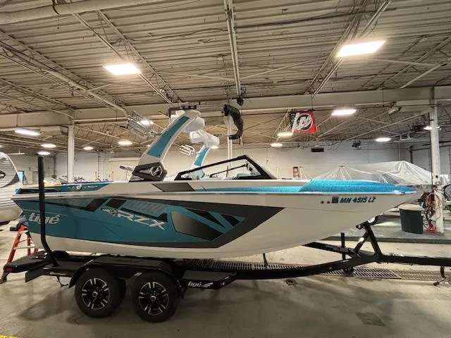 Used 2020 TIGE 20 RZX with 6.2L Indmar Raptor 355hp - 254 Hours Tandem Axle Trailer Cover Vivid Turquoise and Frost - Metal Flake Z-Cline Captain Chair Tige Pro Driver Mirror Isotta ISM03 Smart Wheel Rear View Camera Starboard Side Transform Seat Heater Plug & Play Ready with 2 Rear Ballast Bags Tige Keyless Ignition Silent Surf Air Exhaust 110v Battery Charger Lexan Windscreen Door ZX Airframe Elite Windshield Upgrade Alpha E2 Tower - White Paint on AlphaE2 Tower Side Panels - Metal Flake Alpha Surf Racks Black Surf Bimini Top Power 10+ Sound System 3 Pairs Revo8 Interior Speakers, Syn6 6 Channel Amp, Syn2 2 Channel Amp, 12 Inch Free Air Sub, 2 Pairs Tige Tower Speakers Audio Transom Display Remote Lighting Options : RGB Pack - 2 Pair Tower Speakers LED Rings, Interior Speaker LED Rings, LED Tower Blade 2 Under Water Lights Docking Lights