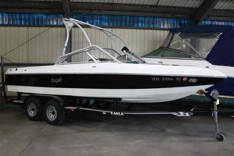 This amazing 2003 tige 21i Type r comes packed with a 315hp merc cruiser 350 mag with 440 hours. This boat is set right up to ski. It has a beautiful eagle trailer, watersports tower, upgraded new stereo, bow filler cushion, newer upholstery, carpet flooring. And a huge swim platform. This boat can be seen at our Laconia location. Call 603-524-6661 for more information!