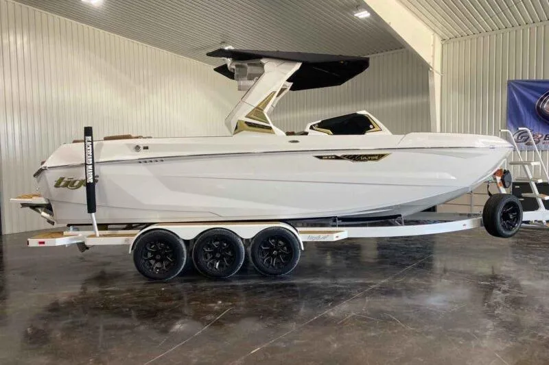 -Powered by a Indmar 575 6.2L Roush Charged V8 -GO System powered by TAPS 3T -Thruster -Tige Clear Horizon -Ballast 4200 lb -The Alpha E3+ with SolidShade -Power Tower -Audison Pro-Audio System 8 spreakers --UltréAudio with the standard Audison 3D Sound System. With 12 inch Subs -FastFlip Co-Captain's Chair -Co-Command Screen -UltréChill ( Refrigerator) -UltréXL SolidShade - UltréBoost -Dual-facing transom seats - Electric steering assist -Ultré Powered Captain's Chair - All new, first-of-its-kind Ultré RetracTable -All new Ultré trailer -Rear surf locker -Underwater lights -Led lighting throughout the cockpit & storage -Boat cover -7 Year Warranty