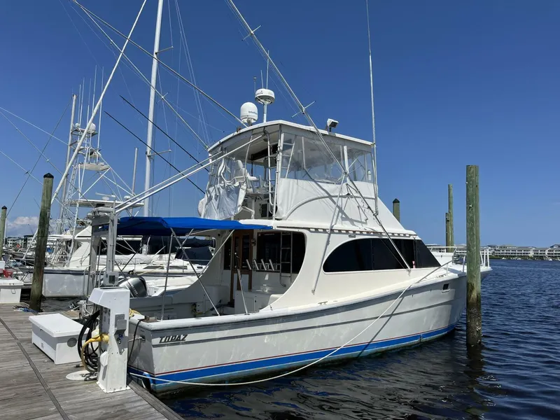 The 1989 Topaz 44 Sportfisherman is a limited-production, offshore-ready vessel built with durability, performance, and functionality in mind. Known for its solid fiberglass construction and wide beam, this Topaz delivers a smooth, stable ride and is well-suited for serious fishing, diving, or extended cruising. This particular vessel has seen several thoughtful upgrades that enhance its reliability, comfort, and versatility on the water.