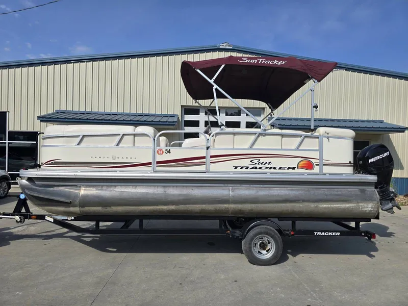 2011 Tracker Party Barge 21 , 2011 Sun Tracker Party Barge 21 Enjoy the water in comfort and style with this well-kept 2011 Sun Tracker Party Barge 21. This one-owner pontoon has been cared for and is ready for more seasons of fun. It's powered by a reliable Mercury 60HP Four Stroke EFI, delivering smooth performance for cruising, swimming, or just relaxing with friends and family. This boat comes complete with a matching trailer, making transport and storage simple. The interior is in good condition overall, with only a few minor split seams that don't affect use. Spacious seating, plenty of storage, and Sun Tracker's durable aluminum construction make it a great option for anyone looking for an affordable pontoon. Whether you're planning easy afternoons on the lake or casual weekends with the family, this Party Barge is lake-ready and runs great.