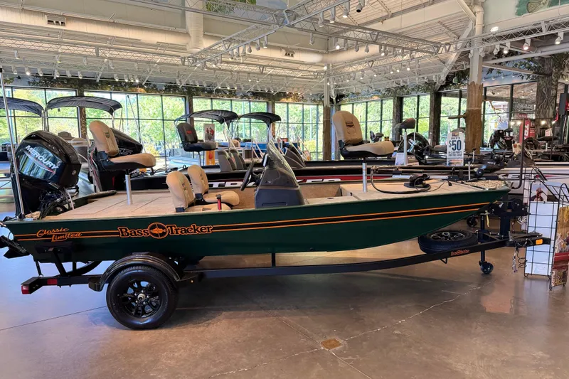 The BASS TRACKER CLASSIC Limited Edition enhances the best value in fishing boats with luxurious, eye-catching features. Its Army Green DIAMONDCOAT™ powder coat finish offers both striking appearance and proven durability, maintaining a long-lasting shine. The boat is equipped with 13-inch black trailer wheels fitted with premium radial tires, complemented by a matching spare. Inside, the Limited Edition boasts an upgraded fishing setup, including a Lowrance® Hook5 Reveal color GPS fishfinder. To complete this exclusive package, it features Limited Edition floor mats, decals, and a custom deck stripe. BASS TRACKER is dedicated to delivering industry-leading value to anglers and families, and with the introduction of the all-new BASS TRACKER CLASSIC Limited Edition, you receive exceptional value along with a distinctive feature set that's destined to become a classic.