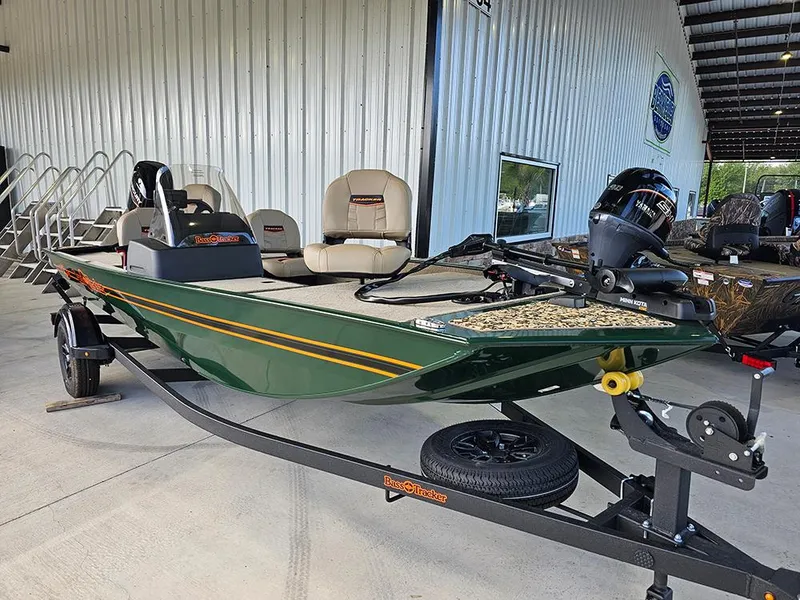 This green Tracker Bass Tracker Classic Limited has a Mercury 50 ELPT 4S EFI outboard motor.