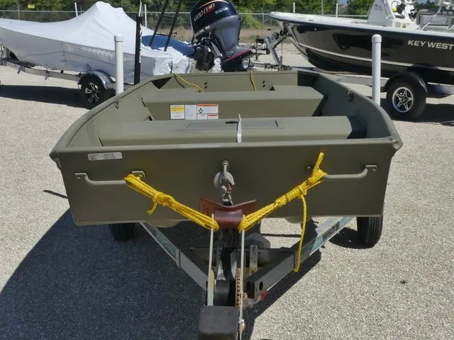 The NEW TRACKER GRIZZLY 15 Jon is a rugged and versatile aluminum jon boat, suitable for fishing, hunting, or work purposes. Its unitized stringer, transom, and hull ensure a sturdy build and a smooth, dry ride. The boat features a thick .063 aluminum cockpit floor and a 9.5-gallon wet well on the front deck. The 7° deadrise Mod V hull provides a comfortable ride, and the Forest Green powder-coat finish, along with the SURE TREAD texture on the floor, adds to its durability. Additionally, the TRACKER PROMISE warranty offers peace of mind, making it a reliable choice among aluminum boats.