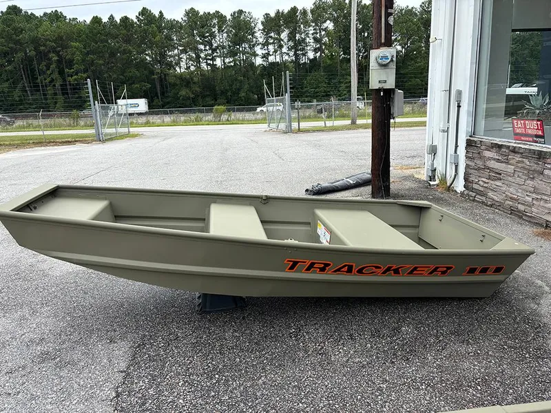 This green 2025 Tracker Grizzly 10 Jon has no outboard motor, but you can order one!