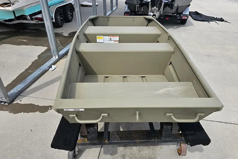 This forest green Tracker Grizzly 1036 Utility Jon Boat has a outboard recommendation of 3.5HP.