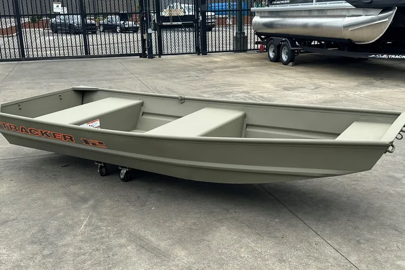 Step aboard the TRACKER GRIZZLY 12 jon boat, with the standout feature of the TRACKER GRIZZLY 12 jon boat lies in its all-welded hull design, setting it apart with unmatched durability and structural integrity. Unlike boats with riveted hulls that may develop leaks or weak points over time, the all-welded construction of the GRIZZLY 12 forms a solid and seamless foundation. This sturdy design not only prolongs the boat's lifespan but also enhances its performance on the water, ensuring a smooth and stable ride across diverse conditions.