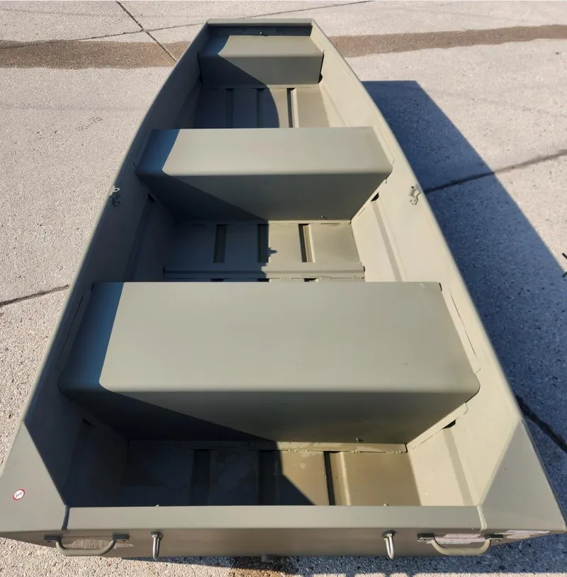 Step aboard the TRACKER GRIZZLY 1236 jon boat, with the standout feature of the TRACKER GRIZZLY 1236 jon boat lies in its all-welded hull design, setting it apart with unmatched durability and structural integrity. Unlike boats with riveted hulls that may develop leaks or weak points over time, the all-welded construction of the GRIZZLY 1236 forms a solid and seamless foundation. This sturdy design not only prolongs the boat's lifespan but also enhances its performance on the water, ensuring a smooth and stable ride across diverse conditions.