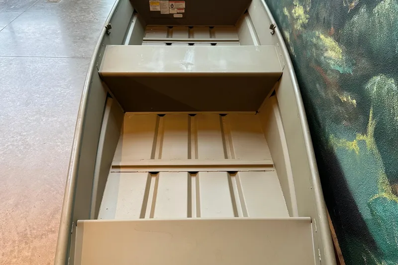 Introducing the TRACKER GRIZZLY 14 jon boat, an agile aluminum vessel crafted to comfortably host three anglers. Emphasizing the all-welded hull design, the TRACKER GRIZZLY 14 sets a new standard in durability and performance. Unlike riveted hulls that may develop vulnerabilities over time, the all-welded construction of the GRIZZLY 14 ensures a solid and seamless framework, enhancing longevity and reliability. Whether tackling challenging waters or cruising leisurely, the all-welded hull design guarantees a secure and enjoyable boating experience, making the GRIZZLY 14 a top choice for adventurous anglers. Reinforced with aft foam boxes and corner braces at the transom, this boat is engineered to thrive in rugged terrains, whether embarking on a dusty trail to your secluded fishing haven or enjoying a serene day on the water. The GRIZZLY 14 features center and aft bench seats, complemented by a spacious bow platform, offering ample space for gear storage and ensuring a cozy fishing experience for all occupants.