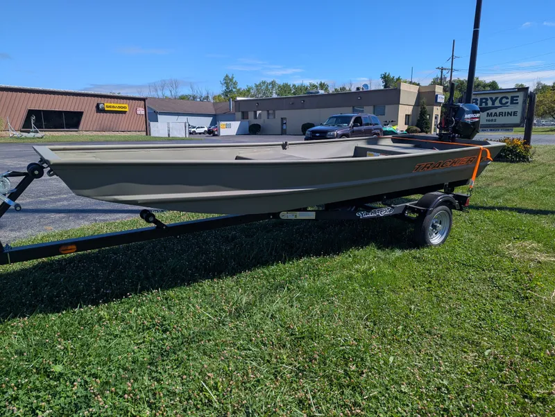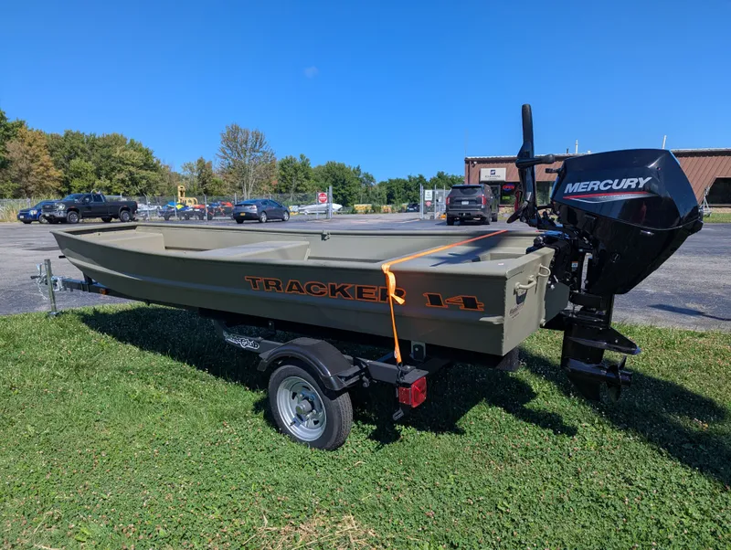 2026 Tracker Grizzly 1436 Jon boat2024 Mercury 15MH (used with 2 hours on it) - motor options availableNew Yacht Club 1610B trailerBasic Warranty (Months): 60Technical SpecificationsLength: 166 in; 4200 mmBeam: 53 in; 1.3 mDry Weight: 165 lbs; 74.8 kgWeight Capacity: 580 lbs; 263.1 kgNumber of Passengers: 3ExteriorHull Material: Aluminum