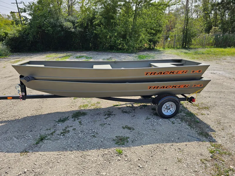Introducing the TRACKER GRIZZLY 1436 jon boat, an agile aluminum vessel crafted to comfortably host three anglers. Emphasizing the all-welded hull design, the TRACKER GRIZZLY 1436 sets a new standard in durability and performance. Unlike riveted hulls that may develop vulnerabilities over time, the all-welded construction of the GRIZZLY 1436 ensures a solid and seamless framework, enhancing longevity and reliability. Whether tackling challenging waters or cruising leisurely, the all-welded hull design guarantees a secure and enjoyable boating experience, making the GRIZZLY 1436 a top choice for adventurous anglers. Reinforced with aft foam boxes and corner braces at the transom, this boat is engineered to thrive in rugged terrains, whether embarking on a dusty trail to your secluded fishing haven or enjoying a serene day on the water. The GRIZZLY 1436 features center and aft bench seats, complemented by a spacious bow platform, offering ample space for gear storage and ensuring a cozy fishing experience for all occupants.