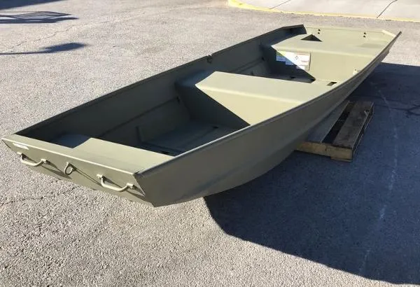 Introducing the TRACKER GRIZZLY 1436 jon boat, an agile aluminum vessel crafted to comfortably host three anglers. Emphasizing the all-welded hull design, the TRACKER GRIZZLY 1436 sets a new standard in durability and performance. Unlike riveted hulls that may develop vulnerabilities over time, the all-welded construction of the GRIZZLY 1436 ensures a solid and seamless framework, enhancing longevity and reliability. Whether tackling challenging waters or cruising leisurely, the all-welded hull design guarantees a secure and enjoyable boating experience, making the GRIZZLY 1436 a top choice for adventurous anglers. Reinforced with aft foam boxes and corner braces at the transom, this boat is engineered to thrive in rugged terrains, whether embarking on a dusty trail to your secluded fishing haven or enjoying a serene day on the water. The GRIZZLY 1436 features center and aft bench seats, complemented by a spacious bow platform, offering ample space for gear storage and ensuring a cozy fishing experience for all occupants.