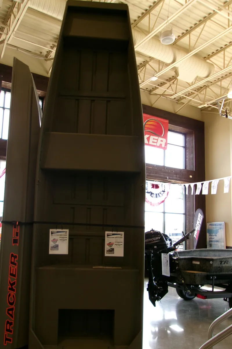 Introducing the TRACKER GRIZZLY 1436 jon boat, an agile aluminum vessel crafted to comfortably host three anglers. Emphasizing the all-welded hull design, the TRACKER GRIZZLY 1436 sets a new standard in durability and performance. Unlike riveted hulls that may develop vulnerabilities over time, the all-welded construction of the GRIZZLY 1436 ensures a solid and seamless framework, enhancing longevity and reliability. Whether tackling challenging waters or cruising leisurely, the all-welded hull design guarantees a secure and enjoyable boating experience, making the GRIZZLY 1436 a top choice for adventurous anglers. Reinforced with aft foam boxes and corner braces at the transom, this boat is engineered to thrive in rugged terrains, whether embarking on a dusty trail to your secluded fishing haven or enjoying a serene day on the water. The GRIZZLY 1436 features center and aft bench seats, complemented by a spacious bow platform, offering ample space for gear storage and ensuring a cozy fishing experience for all occupants.