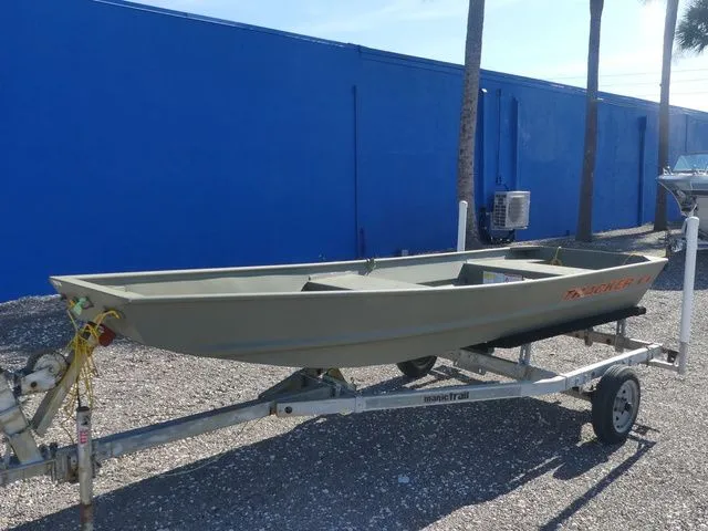 Introducing the TRACKER GRIZZLY 1436 jon boat, an agile aluminum vessel crafted to comfortably host three anglers. Emphasizing the all-welded hull design, the TRACKER GRIZZLY 1436 sets a new standard in durability and performance. Unlike riveted hulls that may develop vulnerabilities over time, the all-welded construction of the GRIZZLY 1436 ensures a solid and seamless framework, enhancing longevity and reliability. Whether tackling challenging waters or cruising leisurely, the all-welded hull design guarantees a secure and enjoyable boating experience, making the GRIZZLY 1436 a top choice for adventurous anglers. Reinforced with aft foam boxes and corner braces at the transom, this boat is engineered to thrive in rugged terrains, whether embarking on a dusty trail to your secluded fishing haven or enjoying a serene day on the water. The GRIZZLY 1436 features center and aft bench seats, complemented by a spacious bow platform, offering ample space for gear storage and ensuring a cozy fishing experience for all occupants.