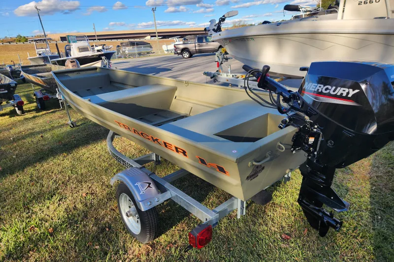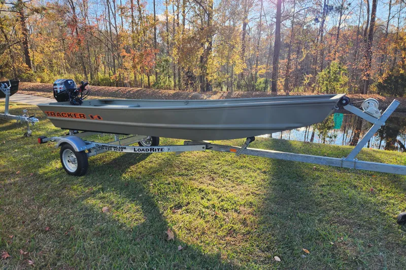 Introducing the TRACKER GRIZZLY 1436 jon boat, an agile aluminum vessel crafted to comfortably host three anglers. Emphasizing the all-welded hull design, the TRACKER GRIZZLY 1436 sets a new standard in durability and performance. Unlike riveted hulls that may develop vulnerabilities over time, the all-welded construction of the GRIZZLY 1436 ensures a solid and seamless framework, enhancing longevity and reliability. Whether tackling challenging waters or cruising leisurely, the all-welded hull design guarantees a secure and enjoyable boating experience, making the GRIZZLY 1436 a top choice for adventurous anglers. Reinforced with aft foam boxes and corner braces at the transom, this boat is engineered to thrive in rugged terrains, whether embarking on a dusty trail to your secluded fishing haven or enjoying a serene day on the water. The GRIZZLY 1436 features center and aft bench seats, complemented by a spacious bow platform, offering ample space for gear storage and ensuring a cozy fishing experience for all occupants.