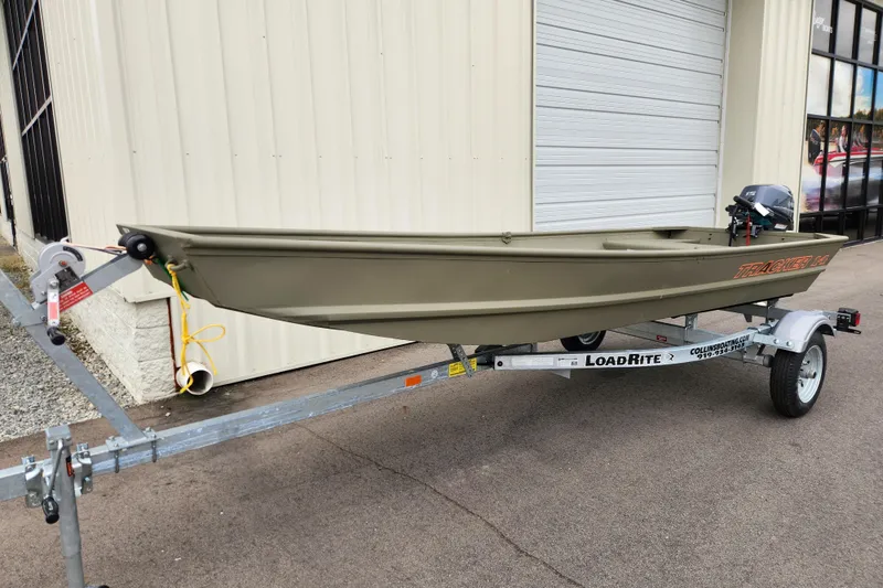 Introducing the TRACKER GRIZZLY 1436 jon boat, an agile aluminum vessel crafted to comfortably host three anglers. Emphasizing the all-welded hull design, the TRACKER GRIZZLY 1436 sets a new standard in durability and performance. Unlike riveted hulls that may develop vulnerabilities over time, the all-welded construction of the GRIZZLY 1436 ensures a solid and seamless framework, enhancing longevity and reliability. Whether tackling challenging waters or cruising leisurely, the all-welded hull design guarantees a secure and enjoyable boating experience, making the GRIZZLY 1436 a top choice for adventurous anglers. Reinforced with aft foam boxes and corner braces at the transom, this boat is engineered to thrive in rugged terrains, whether embarking on a dusty trail to your secluded fishing haven or enjoying a serene day on the water. The GRIZZLY 1436 features center and aft bench seats, complemented by a spacious bow platform, offering ample space for gear storage and ensuring a cozy fishing experience for all occupants.
