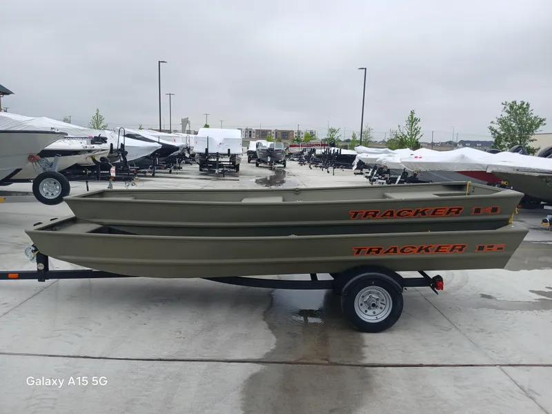 The NEW TRACKER GRIZZLY 15 Jon is a rugged and versatile aluminum jon boat, suitable for fishing, hunting, or work purposes. Its unitized stringer, transom, and hull ensure a sturdy build and a smooth, dry ride. The boat features a thick .063 aluminum cockpit floor and a 9.5-gallon wet well on the front deck. The 7° deadrise Mod V hull provides a comfortable ride, and the Forest Green powder-coat finish, along with the SURE TREAD texture on the floor, adds to its durability. Additionally, the TRACKER PROMISE warranty offers peace of mind, making it a reliable choice among aluminum boats.