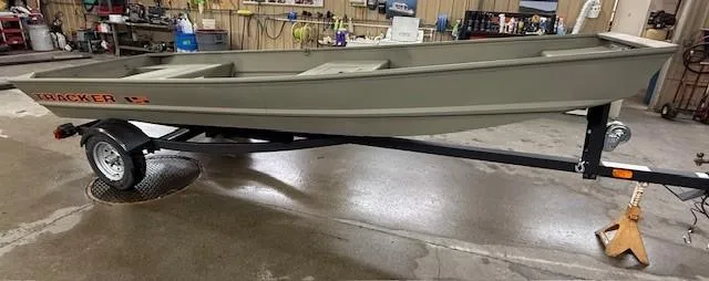The NEW TRACKER GRIZZLY 15 Jon is a rugged and versatile aluminum jon boat, suitable for fishing, hunting, or work purposes. Its unitized stringer, transom, and hull ensure a sturdy build and a smooth, dry ride. The boat features a thick .063 aluminum cockpit floor and a 9.5-gallon wet well on the front deck. The 7° deadrise Mod V hull provides a comfortable ride, and the Forest Green powder-coat finish, along with the SURE TREAD texture on the floor, adds to its durability. Additionally, the TRACKER PROMISE warranty offers peace of mind, making it a reliable choice among aluminum boats.