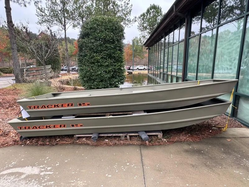 The NEW TRACKER GRIZZLY 15 Jon is a rugged and versatile aluminum jon boat, suitable for fishing, hunting, or work purposes. Its unitized stringer, transom, and hull ensure a sturdy build and a smooth, dry ride. The boat features a thick .063 aluminum cockpit floor and a 9.5-gallon wet well on the front deck. The 7° deadrise Mod V hull provides a comfortable ride, and the Forest Green powder-coat finish, along with the SURE TREAD texture on the floor, adds to its durability. Additionally, the TRACKER PROMISE warranty offers peace of mind, making it a reliable choice among aluminum boats.